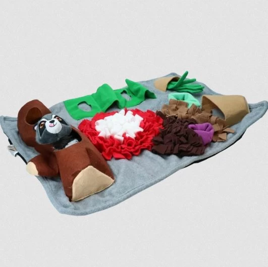 Rechteckige Matte mit Spielzeug, um Snacks zu verstecken.