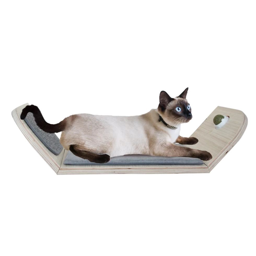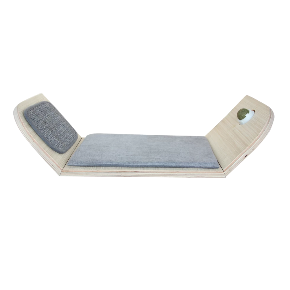 Dieses Element ist ausgestattet mit einer Sisal-Kratzmatte und einem Katzenminze-Ball.