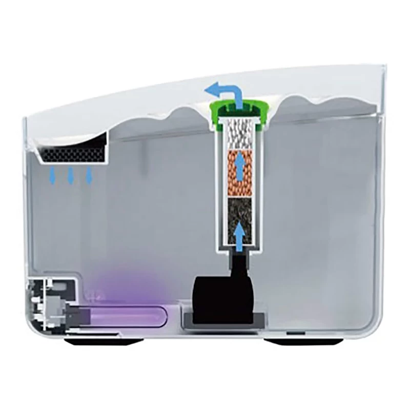 Wasserfilter, UV Licht und Wasserpumpe können als Ersatzartikel bestellt werden – so bleibt dieses Produkt lange in Gebrauch