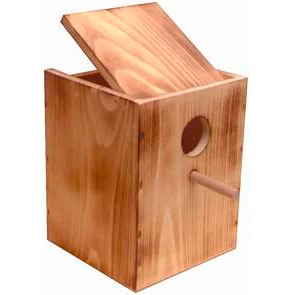 Die Bewo Agapornis-Nistkasten aus Holz für Agaporniden zum Nisten ist ein Schweizer Produkt aus geschützter Werkstätte