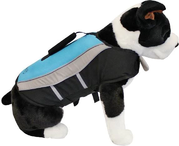 Diese Schwimmweste in Blau ist im Wasser hervorragend zu sehen und das integrierte Kissen gibt dem Kinn Auftrieb und unterstützt den Hund dabei den Kopf beim Paddeln über Wasser zu halten.