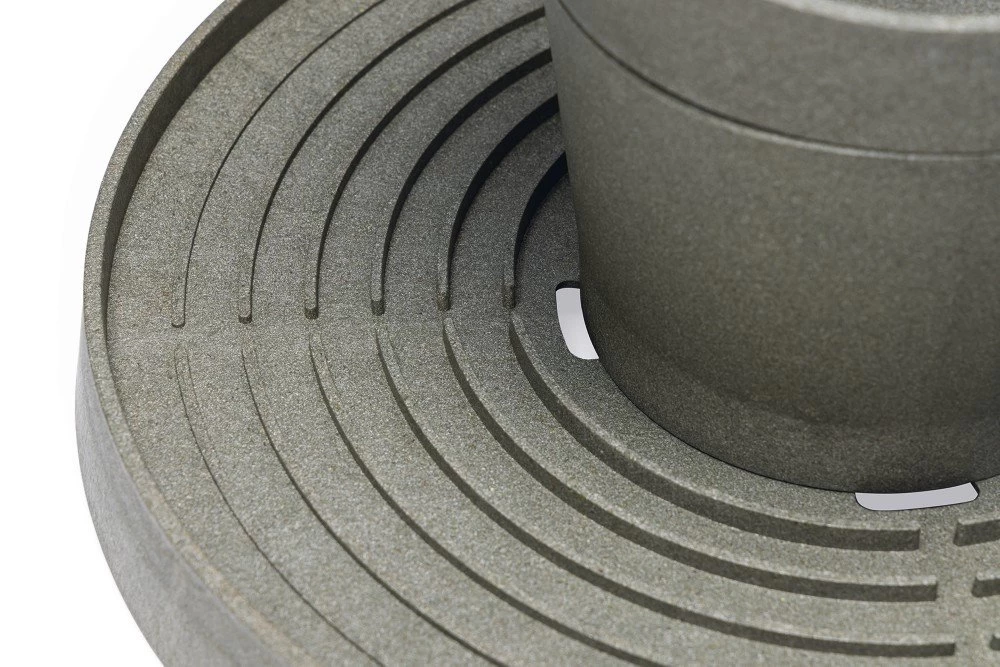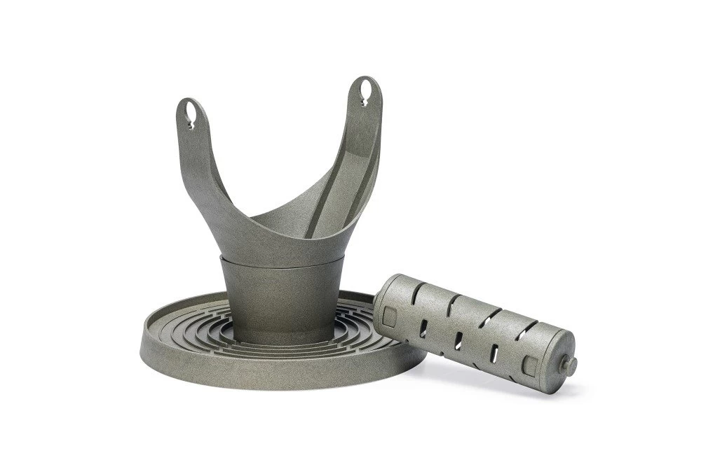 Der Beeztees Futterturm ist aus 100 % recyceltem Kunststoff (etwa 124 gebrauchten Getränkekartons) hergestellt.