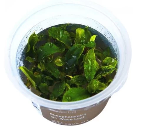 Bucephalandra sp. «Wellenblatt» ist eine Aquarienpflanze, die auf Steinen und Wurzeln wachsen kann. Eine endemische Art von der indonesischen Insel Borneo. Das Rhizom der Pflanze sollte nicht in den Boden eingegraben werden.