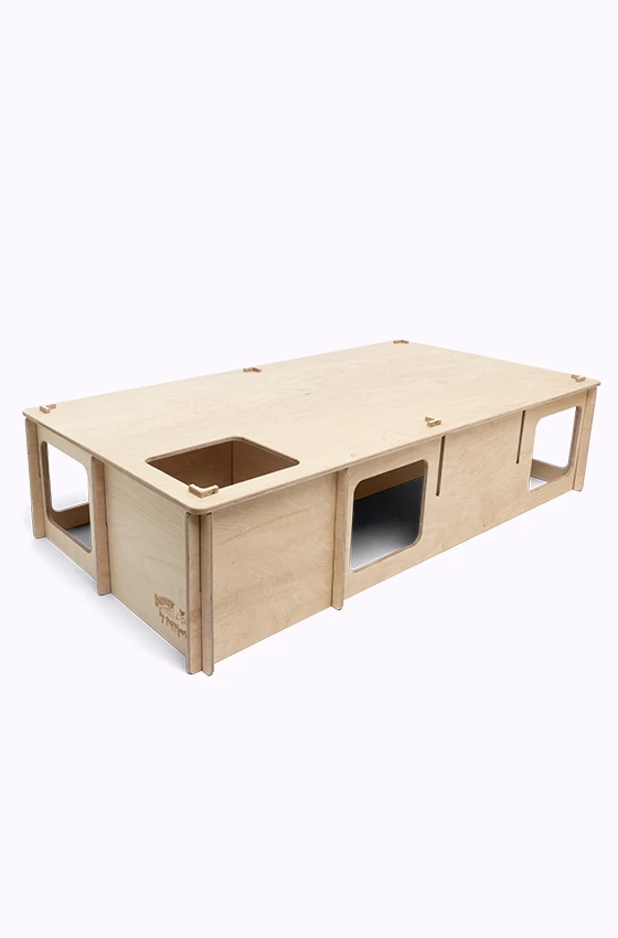 Jetzt kann der Labyrinth-Spass für Ihr Kaninchen beginnen! 1, 2, 3 und schon ist das interaktive Labyrinth zusammengesteckt und unsere neugierigen Lieblinge erkunden das neue Gebiet ganz fasziniert. Hier können sie rauf springen, durchlaufen, sich verstecken und das immer und immer wieder von Neuem, weil das simple Stecksystem ermöglicht es, jeden Tag eine andere Kombination zu stecken. Somit ergeben sich immer wieder neue spannende Wege. Natürlich kann ein Leckerchen beim Erkunden nicht schaden und verdoppelt sogar den Spass für Ihr Kaninchen.