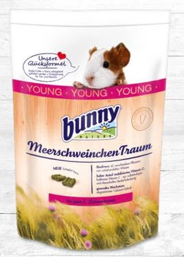 Den Napf mit MeerschweinchenTraum YOUNG füllen und leer fressen lassen, erst dann wieder auffüllen. Täglich hochwertiges bunny Heu und frisches, handwarmes Wasser geben. MeerschweinchenTraum YOUNG bis zum 5. Lebensmonat füttern, dann umstellen auf MeerschweinchenTraum BASIC.