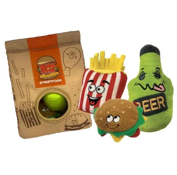 Um Ihren Hund geistig zu beschäftigen und ihm dennoch eine Freude zu bereiten, ist das Plüschspielzeug Hide & Seek die beste Wahl. Die kleineren Plüschtiere können im grösseren versteckt werden und sehen dann aus wie eine Snacktüte. Die Aufgabe von Ihrem Hund ist es jetzt, die Snacks aus der Tüte zu entfernen. Wecken Sie das Interesse von Ihrem Hund mit der mit bei geliefertem Pfeife oder verstecken Sie Snacks in der Snacktüte.