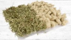 - Inklusive Zubehör: 600 cc Trinkflasche, Heufutterautomat, Ruhehaus, Leiter zum Erklimmen des Daches, 0,3 L Futterschale