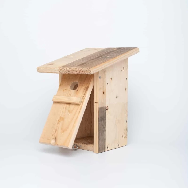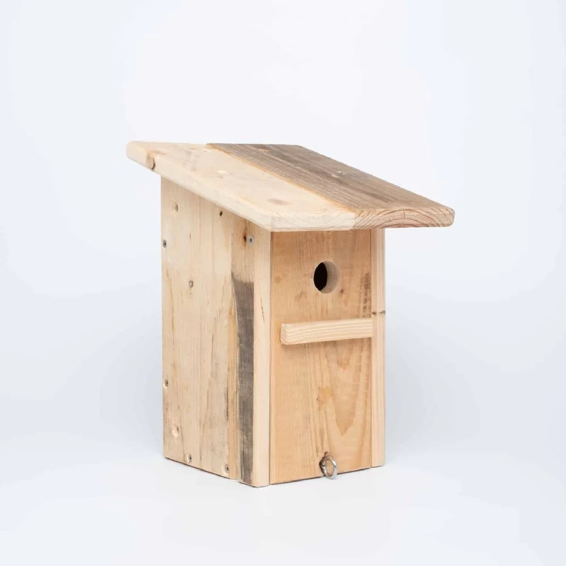 Dieser Nistkasten wurde aus recycleten Euro-Holzpaletten in der Stiftung zsge in Zürich gefertigt. Er ist besonders robust und praktisch zu reinigen.