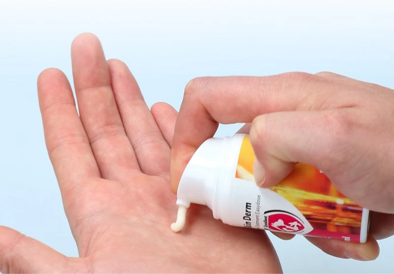2-3 mal täglich eine kleine Menge Salbe auf die gereinigte Haut auftragen.