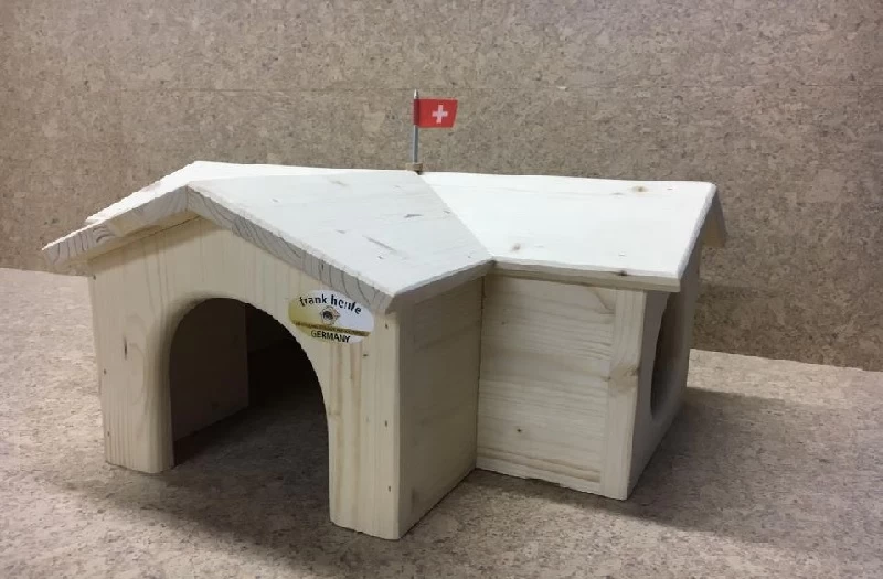 Jeder Nager benötigt in seinem Gehege einen stillen Rückzugsort. Hier baut er sich gerne sein Nest, schläft tief und fest oder ruht sich einfach nur aus. Das beliebte Holz Chalet eignet sich ideal für Kaninchen, Meerschweinchen, Mäuse und Ratten.