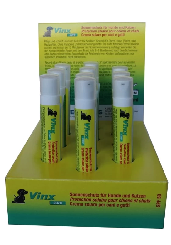 Pflegt und schützt Haut und Fell vor UV-Strahlen. Speziell für Ohren, Nase, Pfoten, rosa Hautpartien. Ohne Parabene und Konservierungsmittel. Die nicht fettende Formel trocknet schnell, wenn man sie 10 Minuten vor der Sonneneinstrahlung aufträgt. Vermeiden Sie den Kontakt mit den Augen und dem Mund. Alle 2 – 3 Stunden und nach dem Schwimmen oder Baden wiederholen.