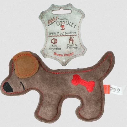 Ein drolliges Kuscheltier, mit einem leisen Quietscher für noch mehr Spielspass. Das Kuscheltier wurde mit Rindsleder hergestellt und ist deswegen sehr robust.