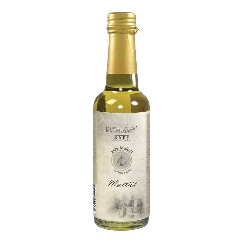 Das Multiöl von Dr. Clauder ist ein wichtiger Zusatz beim Füttern von Barf und kann sich positiv auf die Immunabwehr des Körpers auswirken. Die Zusammensetzung von Dr.Clauders Multiöl besteht aus 5 hochwertigen Pflanzenölen und hilft die Power des Körpers zu optimieren. Der hohe Anteil an mehrfach ungesättigten Fettsäuern sowie der natürliche Gehalt der Öle an Vitaminen können den ganzen Körper kräftigen.