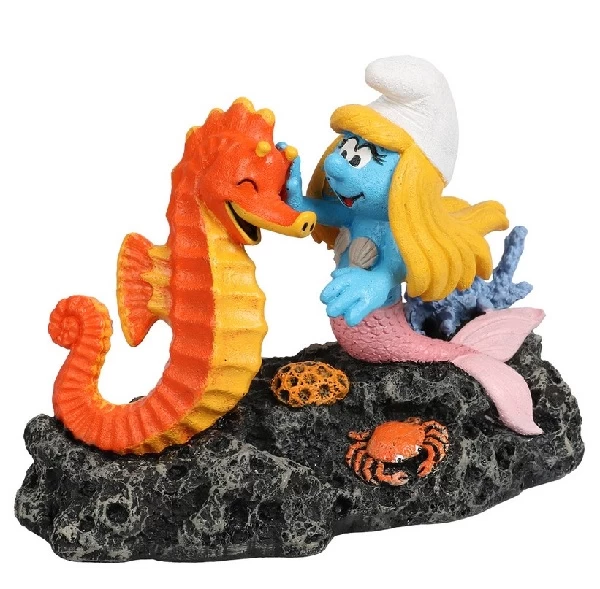 Die Schlümpfe und Aqua Della vereinen ihre Kräfte! Ein neues lustiges und einzigartiges Sortiment, inspiriert von den Abenteuern und Personen der neuen Schlumpf-Serie, ist erschienen. Schaffen Sie jetzt Ihr eigenes Schlumpf-Dorf unter Wasser. Die kleinen beliebten blauen Kreaturen schaffen sofort ein vergnügtes Ambiente in Ihrem Aquarium. Diese Deko, die Schlumpfine und ein Seepferdchen darstellt, ist ausserordentlich genau gearbeitet und besteht aus Polyesterharz. Die Deko ist absolut ungiftig und wirkt sich in keiner Weise auf das biologische Gleichgewicht Ihres Aquariums aus. Sie eignet sich für Süsswasseraquarien und Salzwasseraquarien.