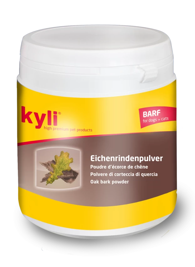 kyli Eichenrindenpulver enthält natürliche Gerbstoffe. Es kann dazu beitragen, die Darmflora zu stabilisieren und dadurch bei unspezifischen Magen- Darmerkrankungen helfen. Als Sud zubereitet kann es für die äusserliche Anwendung gegen Juckreiz helfen. Dieses Eichenrindenpulver ist aus natürlichen Wirkstoffen (Eiche) hergestellt und kann Ihrem Hund auf natürlichem Weg helfen.