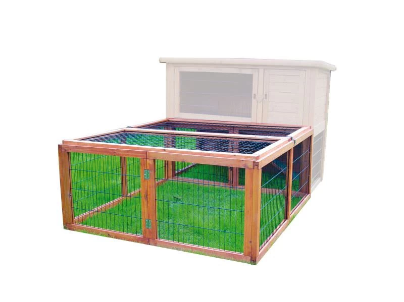Dieses Freilaufgehege passt genau zum Nagerstall IVAN 150 XL und kann einfach an die vordere Front geschoben werden. Dadurch vergrössert sich der Platz für Ihre Kaninchen oder Meerschweinchen und man kann sie prima beim Fressen oder herumtollen beobachten.