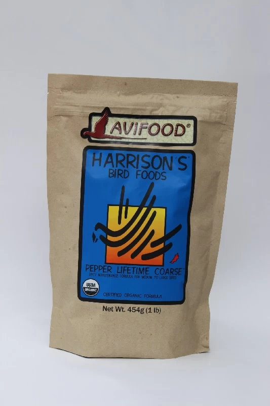 Alleinfutter für erwachsene Amazonen, Edelpapageien, Aras und Kakadus sowie ähnlich grosse Papageien, nachdem die Vögel mindestens 6 Monate lang das Dr. Harrison Zuchtfutter erhalten haben.