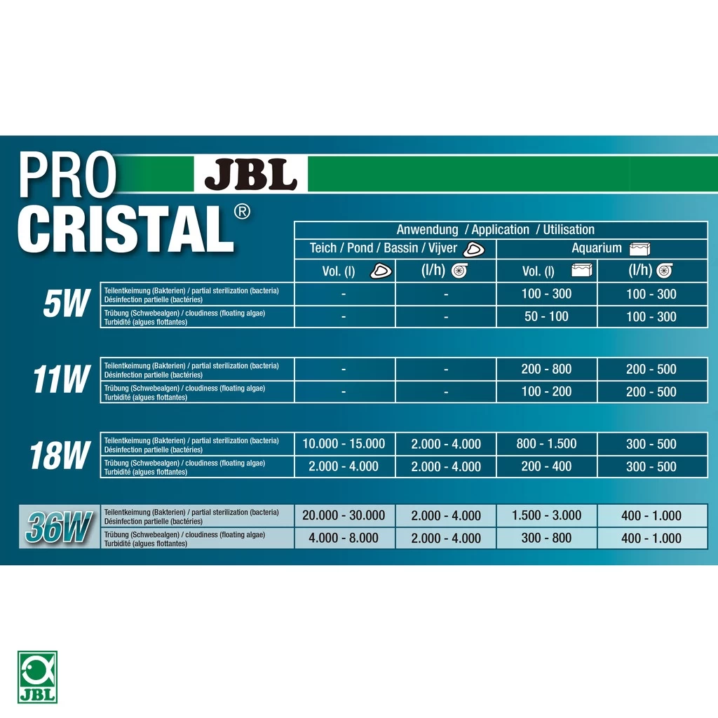 Schlechte Lichtverhältnisse, Überdüngung oder auch ein Überschuss an Nährstoffen können negative Auswirkung auf das Aquarienwasser haben und Algen fördern. Schwebealgen führen zu grünen, Bakterien zu weisslichen Trübungen. Der JBL Wasserklärer beseitigt Trübungen durch Bakterien und Schwebealgen. Das Aquarienwasser wird durch das stabile, UV-beständige Gehäuse des Klärers geleitet. Durch die UV-C Strahlung werden die Bakterien, andere Krankheitskeime und Schwebealgen des durchfliessenden Wassers getötet. Der Wirkungsgrad dieses UV-C Wasserklärers ist besonders hoch, da der Glaskolben mit einer polierten, reflektierenden Edelstahlfolie umgeben ist, die die UV-C-Strahlung zurückwirft und so die Effizienz verdoppelt. Positive Auswirkung kann dies auch auf die Beseitigung von festsitzenden Algen, wie z.B. Fadenalgen haben, da deren Sporen ebenso weitgehend abgetötet werden.