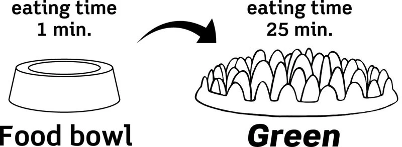 NORTHMATE ® GREEN ist eine als Grasbüschel gestaltete Spezial-Fütterungsvorrichtung, die die Mahlzeit Ihres Hundes in ein herausforderndes Spiel verwandelt.
