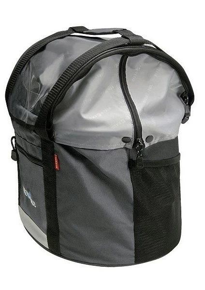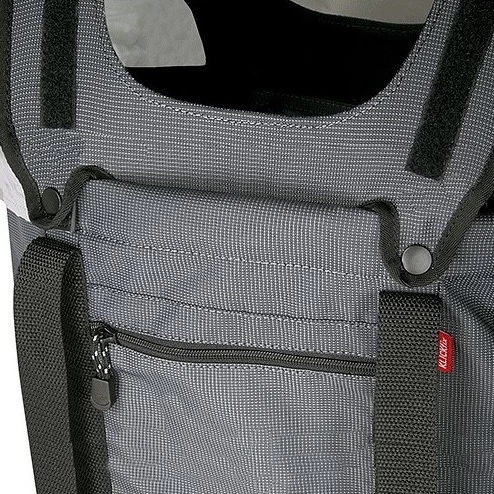 Ein einrollbarer Wind- und Regenschutz bietet viele Möglichkeiten, Licht und Luftöffnungen zu schaffen. Seitlich lässt sich die Tasche bei Bedarf auch komplett schliessen (die Abdeckung verschwindet im Extrafach). Innen ausgestattet mit Kissen, Bodenöse und einstellbarer Leine. Grosse Fronttasche für Wertsachen und seitliche Netzfächer. Mit Tragegriff und grossem Reflektor.
