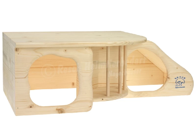 Die Nagerhöhle XL ist bereits fertig zusammengebaut. Sie ist aus massivem Fichtenholz gefertigt. Dieses Material weist keine schädlichen Stoffe auf und ist zu 100% biologisch abbaubar. Somit kann ihr Nager auch unbedenklich daran knabbern!