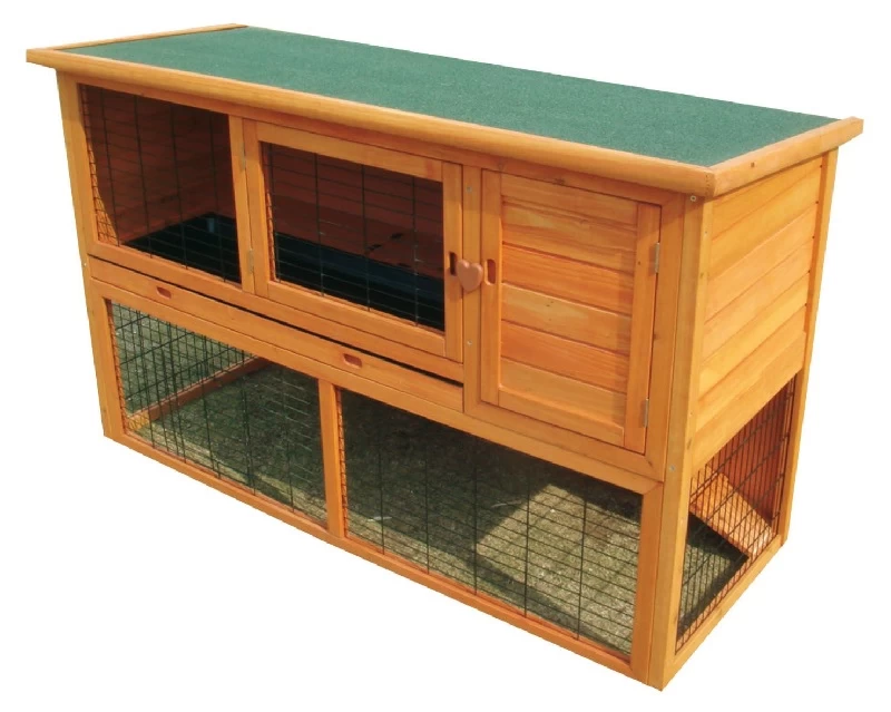 Dieses Nagergehege ist grosszügig konzipiert und das Dach ist aufklappbar. Mit einer Schublade versehen wird das Misten der Kaninchen oder Meerschweinchen ganz einfach.