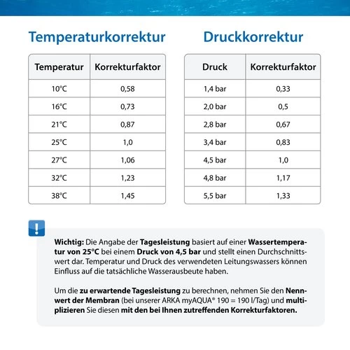 - Kohlefilter: Maximale Kapazität von 5.500 Litern oder Wechsel alle 6 Monate nach Inbetriebnahme