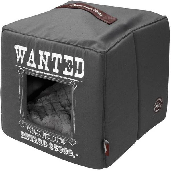 Die Pet-Cube Wanted Höhle besitzt eine hohe gesteppte Umrandung und ein kuscheliges Wendekissen.