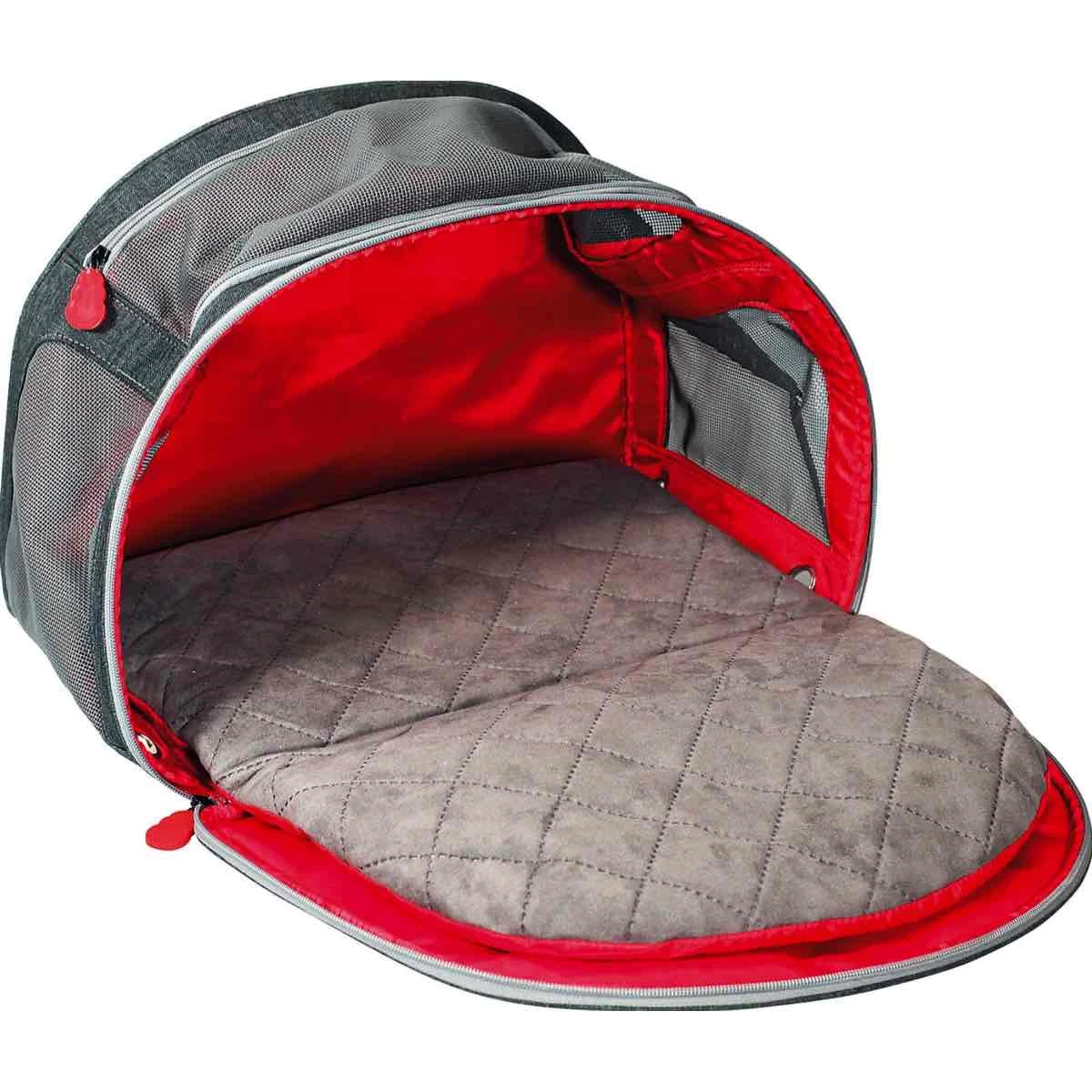Die gepolsterte Matte bietet viel Komfort und reduziert damit den Stress beim Reisen. Die Tasche ist vielseitig zu verwenden und hat Öffnungen an den Seiten und von oben.