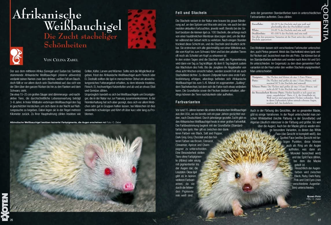 Afrikanische Weißbauchigel. Die Zucht stacheliger Schönheiten