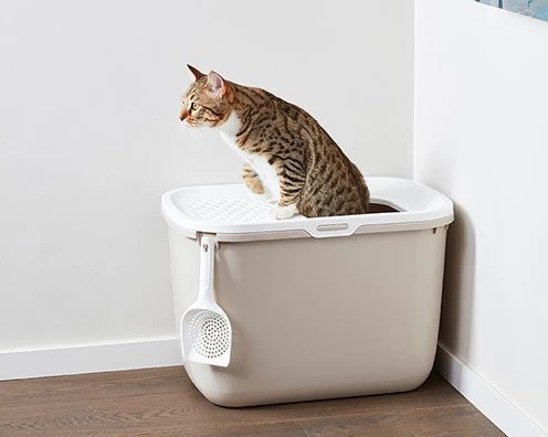 Platzieren Sie den Hop In in eine Ecke; dass spart Platz und Ihre Katze wird gezwungen, das Katzenklo über das Tablett zu verlassen, um auf dem Deckel mit kleinen Löchern zu gehen, bevor sie nach unten springen kann.