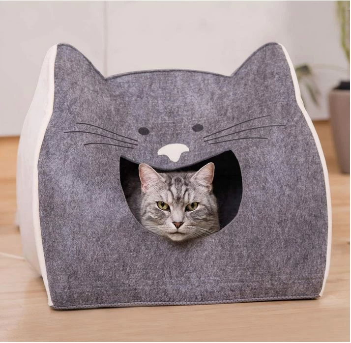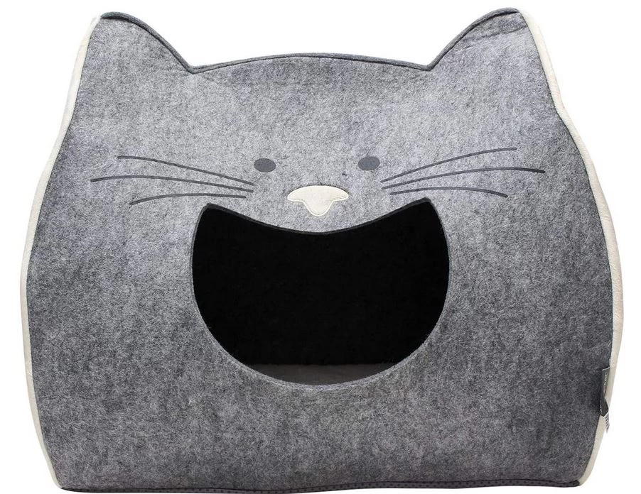 Diese süsse und praktische Katzenhöhle, ist ein kuschliger Rückzugsort. Das Kissen in der Katzenhöhle ist auf einer Seite aus 100 % Bio-Baumwolle und kann herausgenommen werden. Das Äussere der Katzenhöhle ist an den Seiten weich und plüschig, ausserdem ist der Boden der Katzenhöhle rutschfest. Die Katzenhöhle lässt sich sogar zusammenfalten und lässt sich einfach verstauen. An der Hinterseite oben befindet sich ein Loch, wo man seine Katzen darin beobachten kann oder Spielzeug hineinwerfen kann.