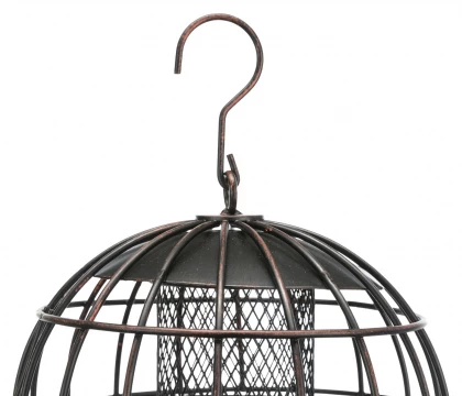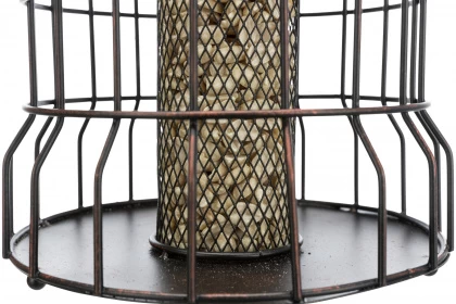 Das Schutzgitter ermöglicht kleinen Vögeln in Ruhe zu fressen und die Erdnüsse aus dem Gehäuse zu picken. Durch das kleine Dach bleiben die Erdnüsse vor Regen geschützt.