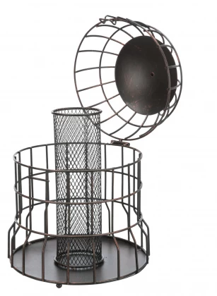 Der Erdnuss-Spender ist einfach zu befüllen durch einen aufklappbaren Deckel und auch einfach aufzuhängen durch den Haken.
