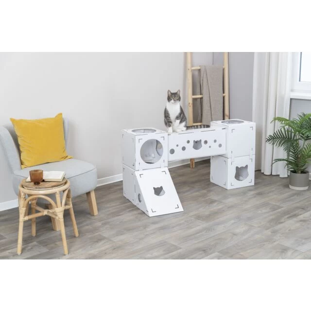 Mit diesem Pappe-System von Trixie können Sie das zu Hause Ihrer Katze immer wieder neu gestalten und umbauen. Es handelt sich um ein Stecksystem aus Pappe, welches für bis zu 8kg Katzen ausgelegt wurde und es verfügt über diverse Zusammenbaumöglichkeiten – Ihre Phantasie ist gefragt – oder Sie ziehen die Aufbauanleitung zur Hilfe.