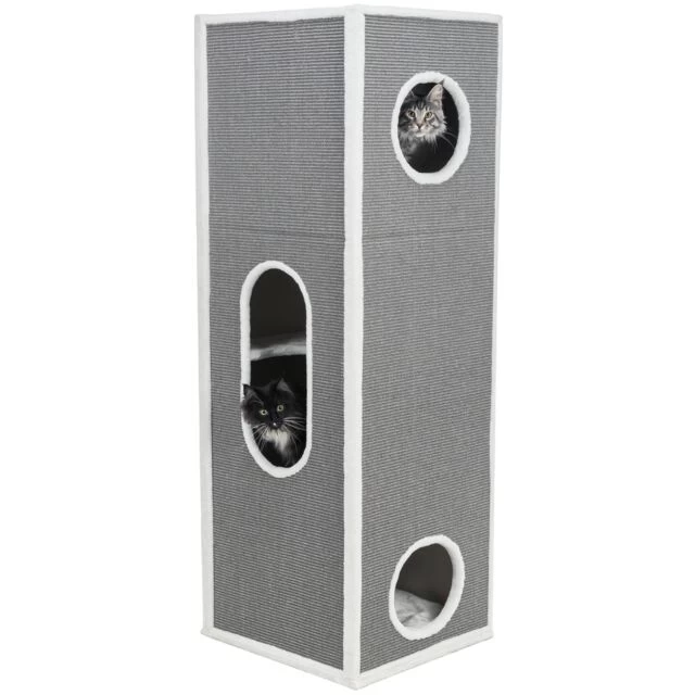 Die äusseren Sisalflächen dienen ideal dem Krallenwetzen und erleichtern den Aufstieg zu höheren Ebenen. Die weiche Liegeplatte auf der obersten Plattform ermöglicht es, entspannt Ausschau zu halten und alles zu überblicken. Der XXL Stefano ist besonders für mehrere oder grosse Katzen wie Maincoons geeignet.