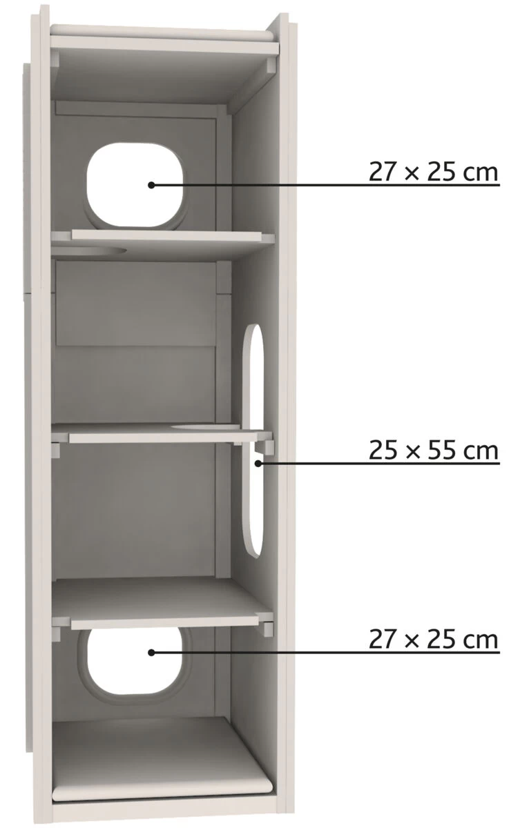 Der Cat Tower XXL Stefano ist ein Paradies für Katzen. Mit seinen grosszügigen 4 Ebenen und einer imposanten Gesamthöhe von 178 cm lädt er zu ausgiebigem Klettern und Kratzen ein. Die weichen Höhlen bieten gemütliche Rückzugsorte für die Vierbeiner. Die Ebenen sind geschickt miteinander verbunden, sodass die Katzen mühelos von oben nach unten gelangen können.