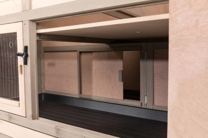 Rückzugsmöglichkeit mit Schiebetür - herausnehmbare Kunststoffscheibe bietet Schutz vor Zugluft und Niederschlag