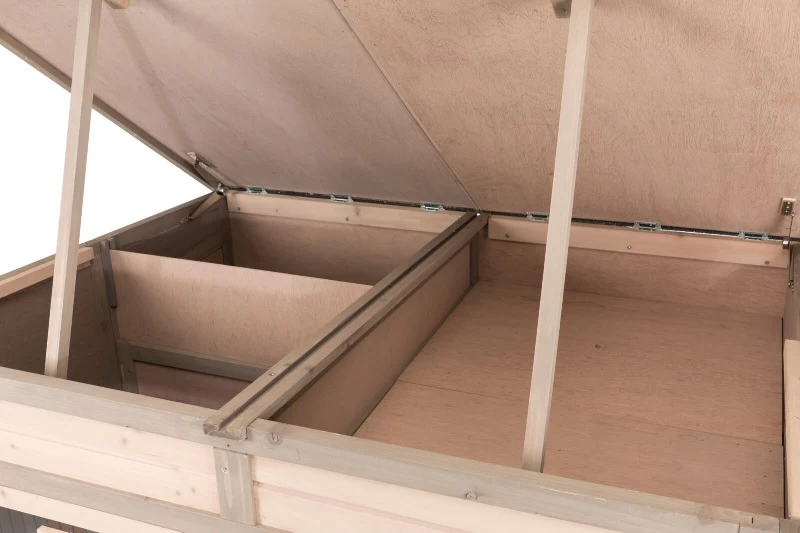 - eine Dachhälfte mit Stauraum und herausnehmbaren Bodenplatten