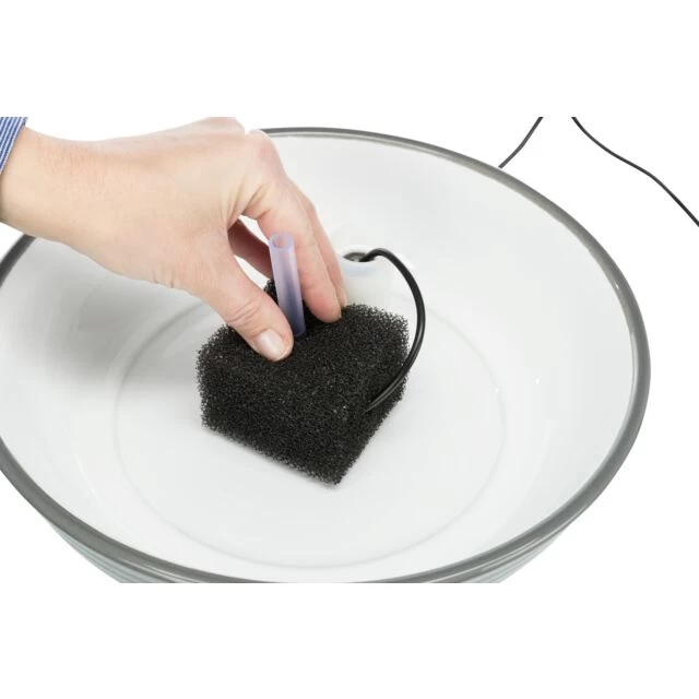 Ein Trinkbrunnen, bei welchem Ihre Katze auswählen kann, ob sie aus dem sprudelnden oder dem stehenden Wasser trinken möchte. Das Wasser bleibt durch die Zirkulation kühl und wird gefiltert, wodurch das Wasser länger frisch bleibt. Der Trinkbrunnen kann in der Spülmaschine gereinigt werden und wird mit einer Steckdose betrieben.