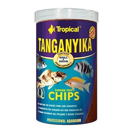TANGANYIKA CHIPS Zutatenreiche, sinkende Spezialfutter-Chips für grosse Tanganjikasee-Cichliden der Gattungen Altolamprologus, Julidochromis, Lamprologus, Neolamprologus, Lepidiolamprologus, junge Cyphotilapia frontosa und andere, deren Nahrung hauptsächlich aus tierischem Material besteht.
