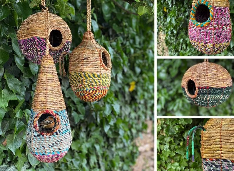 Die wunderschönen und preisgekrönten Artisan Vogelnester werden aus Hogla-Gras und recycelten Saris hergestellt.